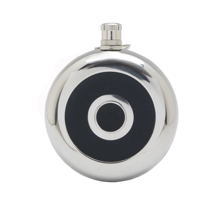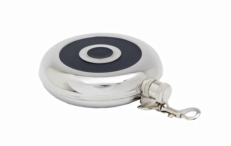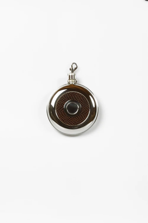 Gepolijst roestvrij staal met lederen inzet en een uittrekbare beker vanuit het midden.