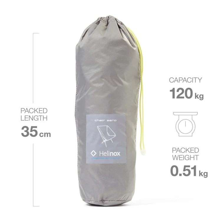 CHAIR ZERO laat je nooit kiezen tussen comfort en gewicht. Kleiner en lichter dan een waterfles, het is wat je lichaam nodig heeft aan het einde van een lange dag wandelen.