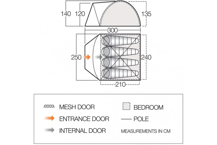 Het koepelvormige ontwerp van deze tent zorgt voor een combinatie van een maximum aan leefruimte en een minimale opbergmaat. De Gothic Arch stokken zorgen voor extra stabiliteit en stevigheid en stahoogte. Het platte grondzeil is makkelijk te reinigen en op te rollen. Het verduisterde slaapvertrek garandeert een goede nachtrust.